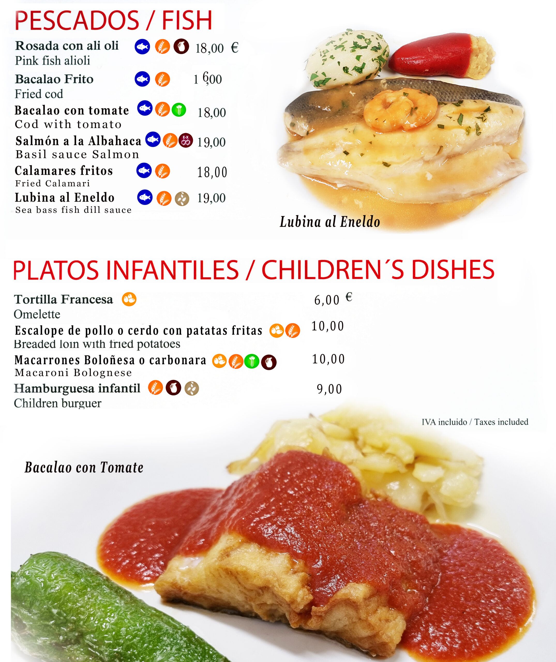Pescados y platos infantiles / Fish and children’s dishes