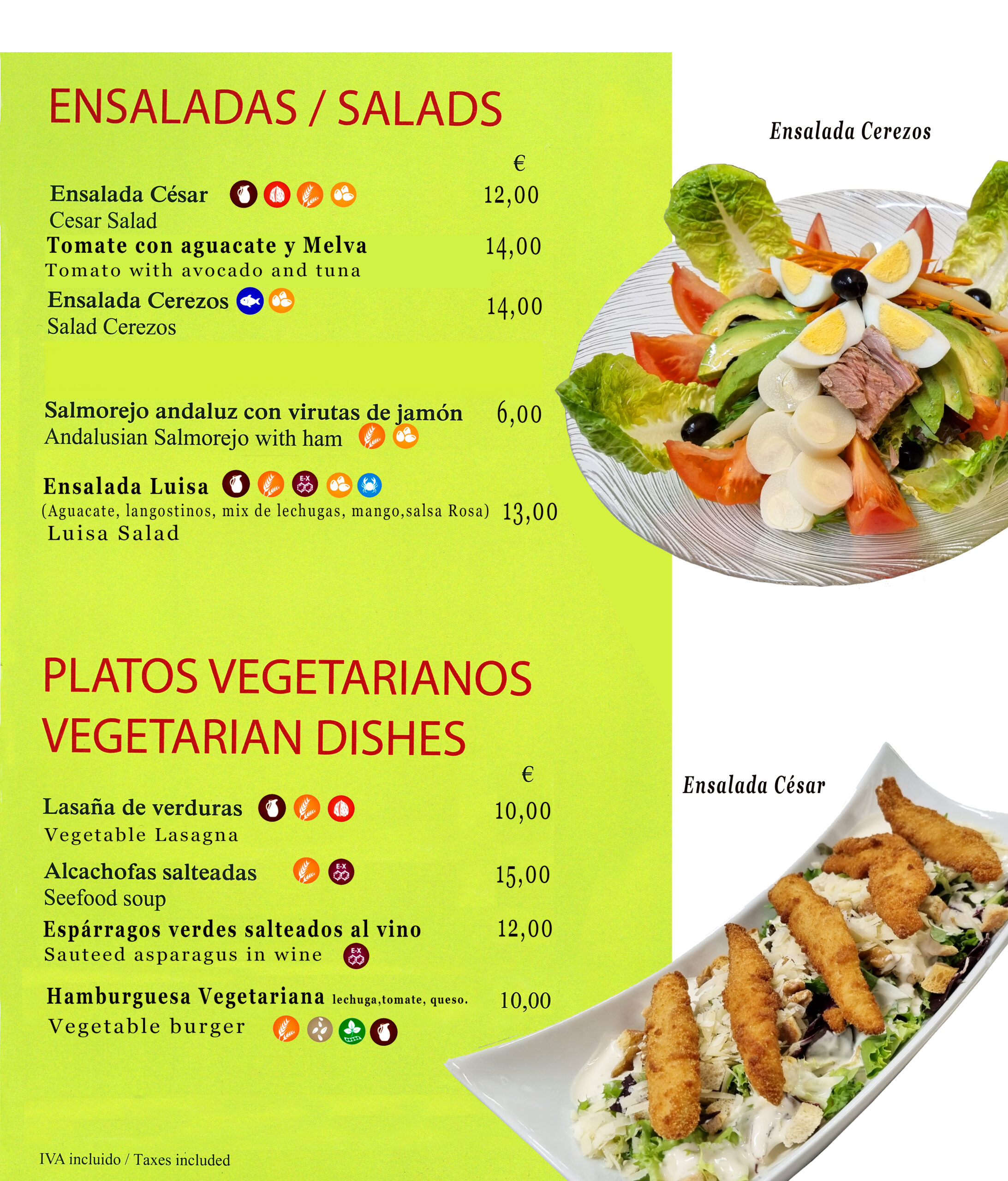 Ensaladas y platos vegetarianos / Salads and vegetarian dishes